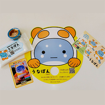 静岡県湖西市公式コミュニケーションキャラクター「うなぽん」のマスキングテープ、ゆるキャラトレカ、シール、うちわ、ウェットティッシュのセットです♪